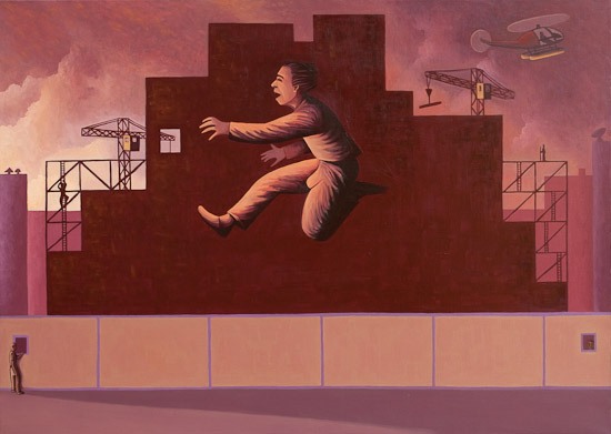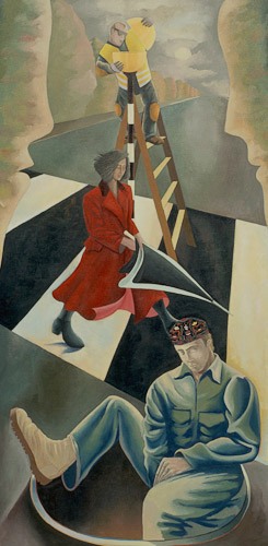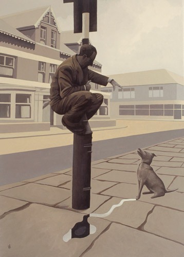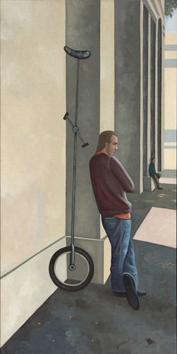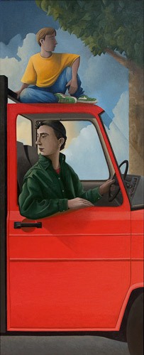 Simon described his work as ‘figurative paintings, highly contemporary, yet maintaining a foothold in more timeless traditions of image making. They are derived from diverse sources and influences, including autobiographical events, urban incidents, archetypal stories, photographs, memory and intuition’.